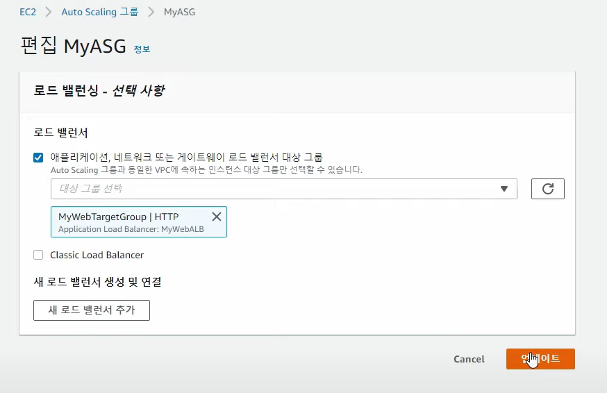 2) 오토스케일링 그룹에서 로드밸런싱 편집 --> 위에서 만든 TG그룹 지정