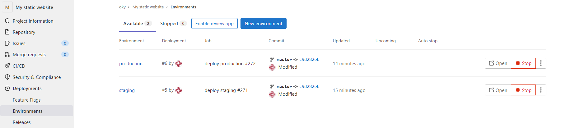 So we need we have a new stage here, deploy staging, but it pretty much looks the same.