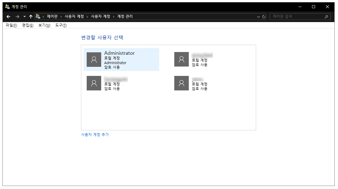 제어판을 들어가시고, 사용자 계정을 눌러주세요.