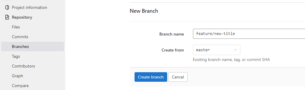 ## Gitlab으로 가서 feature/new-title 브랜치 생성