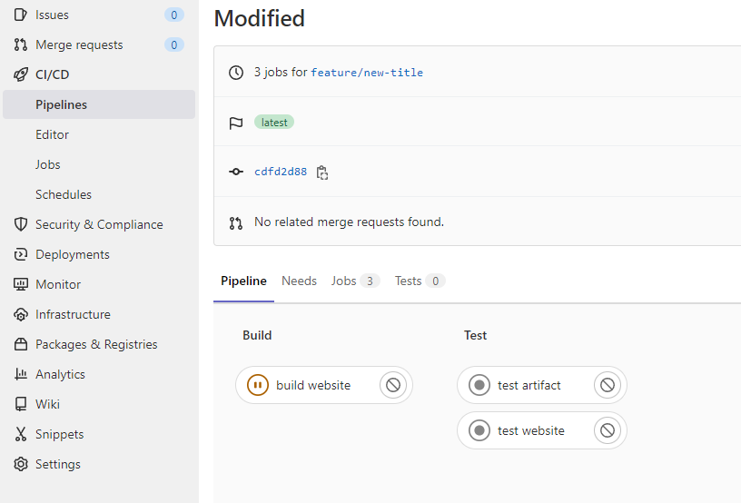 As soon as I've created this brunch, the pipeline will start.