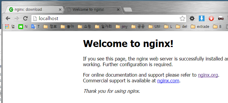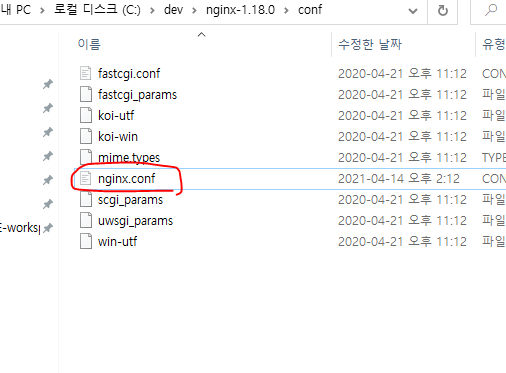 - nginx가 설치된 폴더로 이동하여 nginx.exe 실행