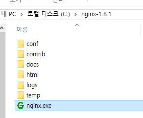 압축해제된 nginx-1.8.1 디렉토리로 들어가보면 nginx.exe 파일이 있다.
