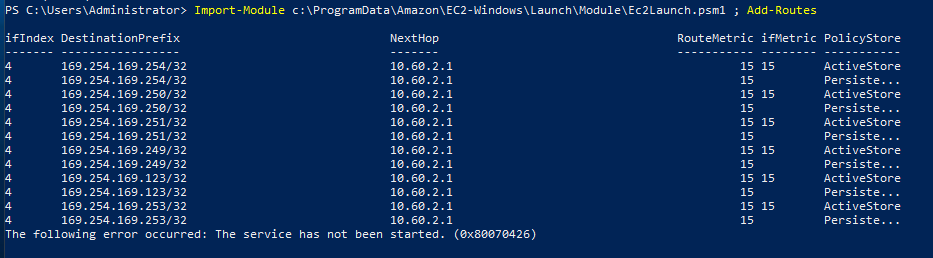 Import-Module c:\ProgramData\Amazon\EC2-Windows\Launch\Module\Ec2Launch.psm1 ; Add-Routes