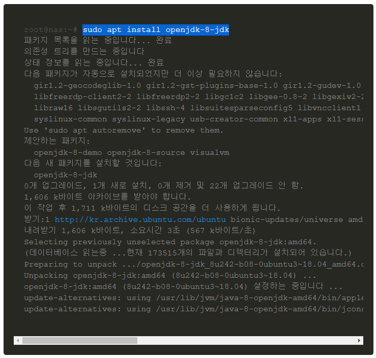 2. apt로 openjdk-8-jdk 설치