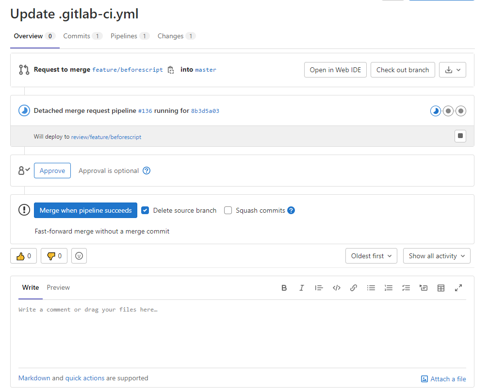 ## before_script 선택적 옵션