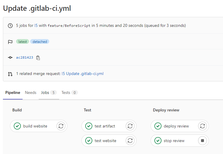 job in the before script block.