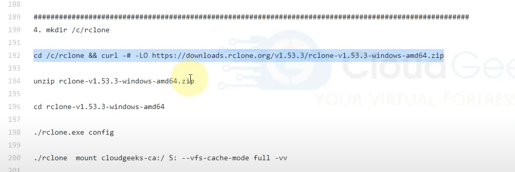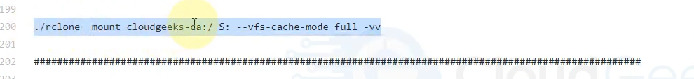 | ---> echo "C:\rclone\rclone.exe mount cloudgeeks-ca:/ S: --vfs-cache-mode full" > rclone-S3.cmd | |
