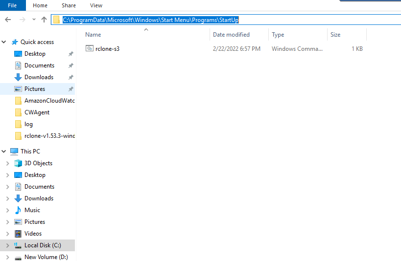 | Copy the rclone-S3.cmd file to the startup folder for all users: | |