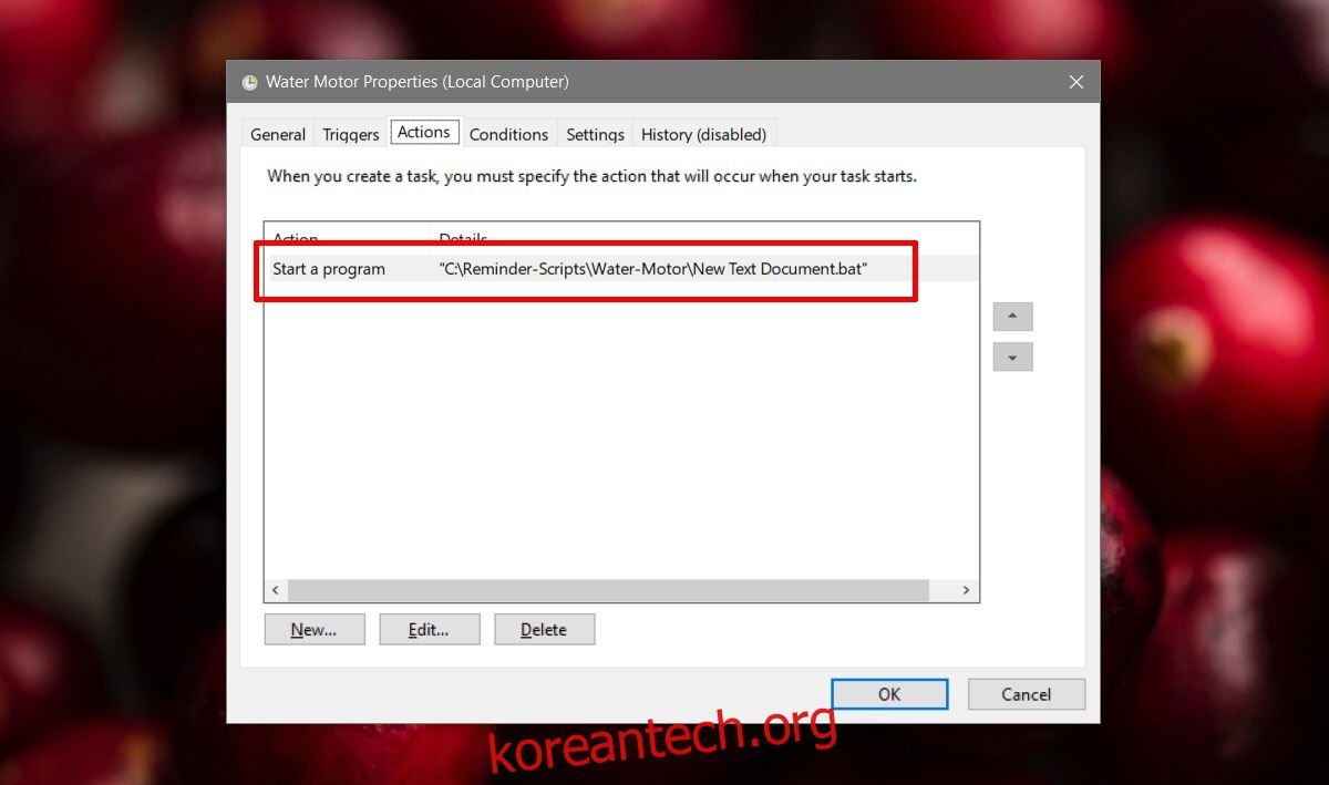 여기서는 작업 스케줄러를 예로 사용했지만 다른 자동화 앱을 사용하는 경우에도 Batch 스크립트를 호출해야 합니다. 유일한 예외는 사용 중인 자동화 앱이 PowerShell을 연 다음 PowerShell 스크립트를 가리킬 수 있는 경우입니다.
