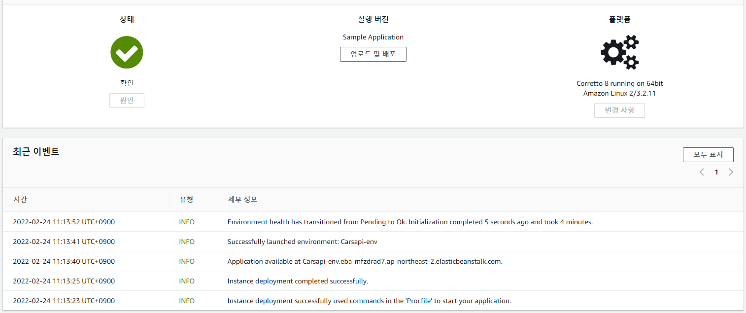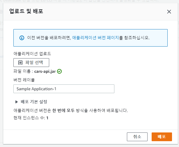 - .jar 파일 수동 업로드 배포 성공