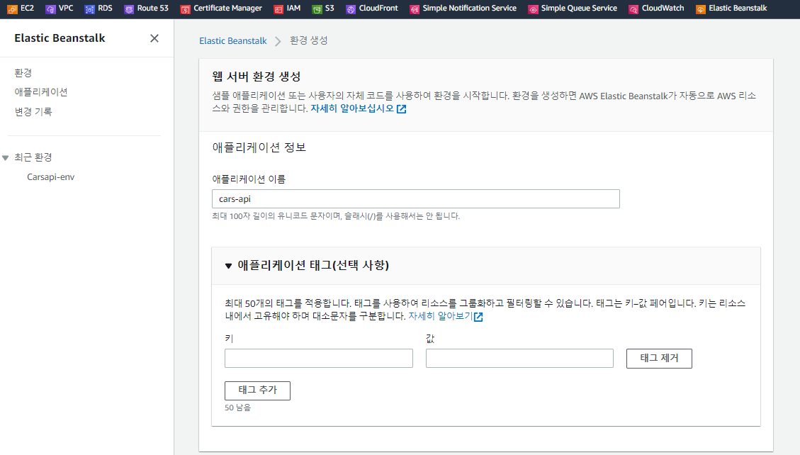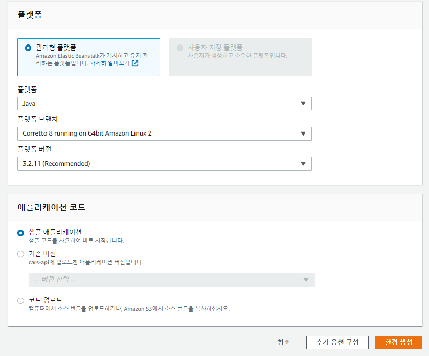 ## Elastic Beanstalk --> 애플리케이션 생성