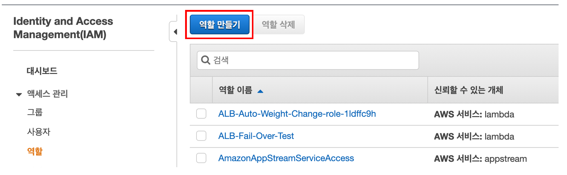 역할 선택 > 역할 만들기 를 클릭합니다.