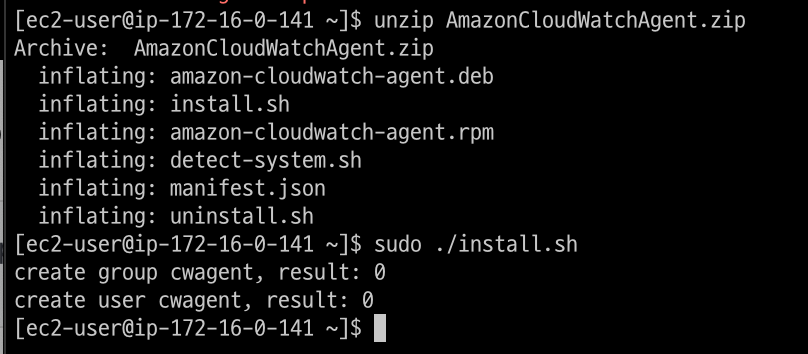 unzip AmazonCloudWatchAgent.zip