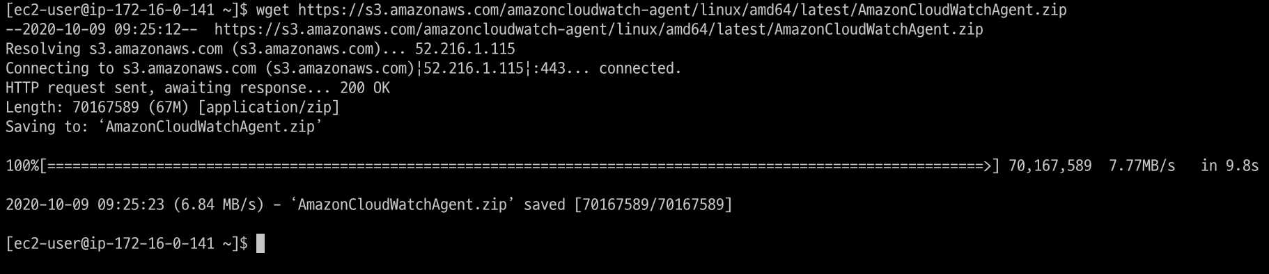 wget https://s3.amazonaws.com/amazoncloudwatch-agent/linux/amd64/latest/AmazonCloudWatchAgent.zip