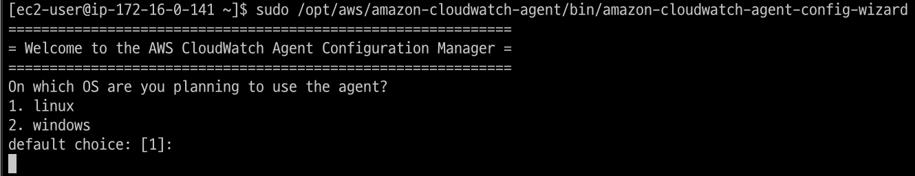 sudo /opt/aws/amazon-cloudwatch-agent/bin/amazon-cloudwatch-agent-config-wizard