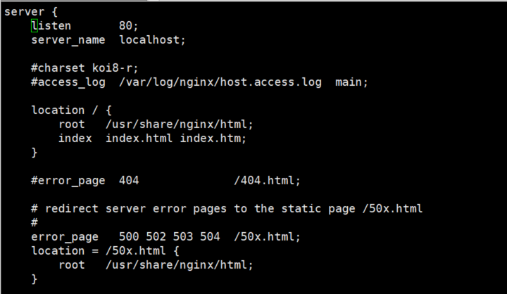 명령어를 통해 nginx.conf파일을 열어보면 아래와 같은 형식을 갖는다. 얼핏보면 json같기도 하다.