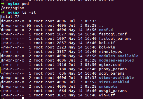 - apt-get을 이용한 패키지 설치 방법을 이용하게 되면 기본적으로 /etc/nginx 폴더에 설치된다.
