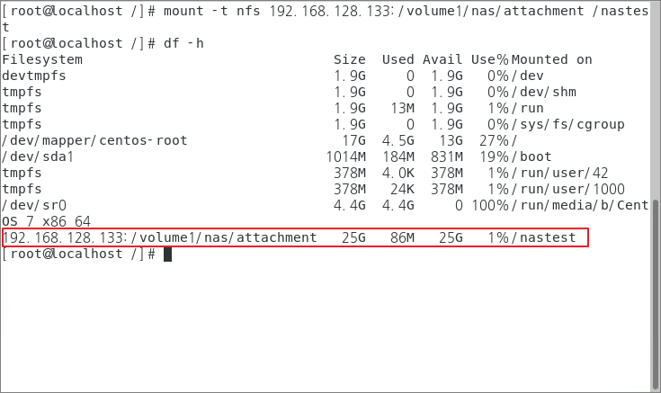 #mount -t nfs [NAS IP주소]:[공유 폴더 경로] [마운트할 경로]