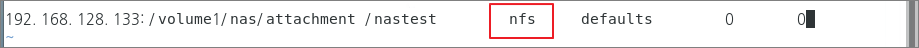NAS의 파일 시스템은 NFS이므로 기존 리눅스 디스크를 마운트 할 때와는 조금 다르게 작성합니다.
