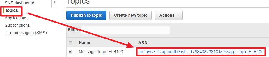 3) Subscriber들이 Topic을 지정할 때 사용하기 위해 ARN을 기억하거나 복사해둔다