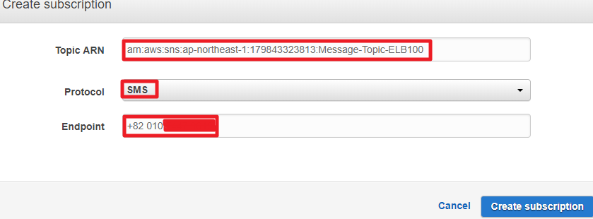 2) Topic ARN : 위에서 만든 Topic의 ARN을 입력한다