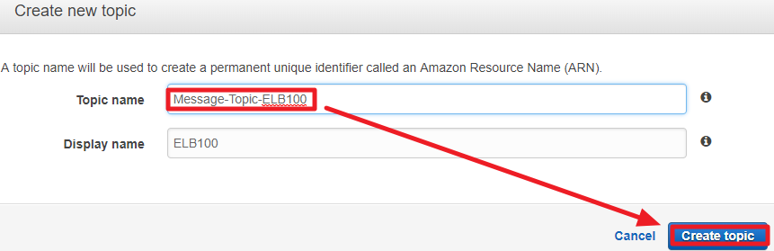 2) Topic Name에 Topic을 구분할 적절한 이름을 입력한 후 Create topic를 클릭한다