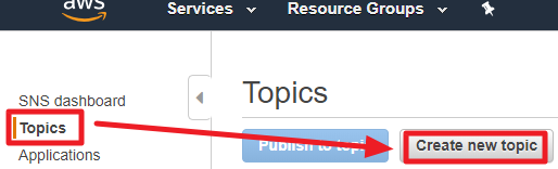 1) SNS서비스의 좌측의 Topics 탭을 클릭한 뒤 Create new topic를 클릭한다