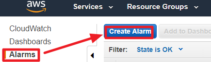 1) Create Alarm을 클릭한다