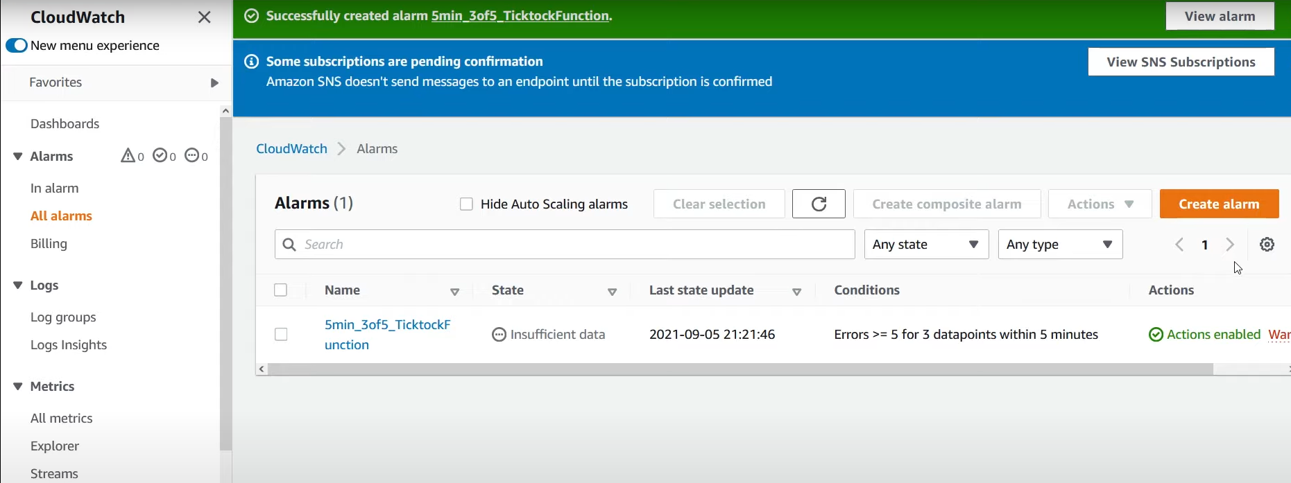 ## CloudWatch 알람생성