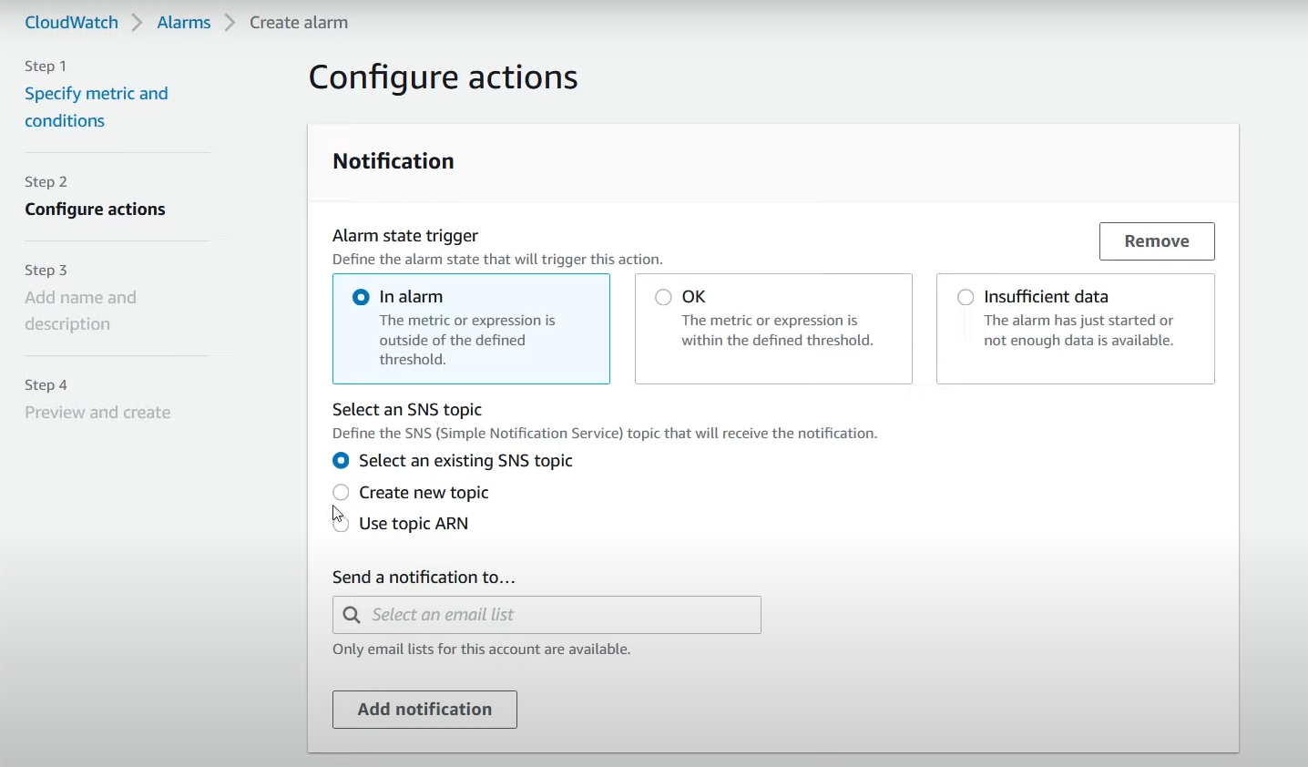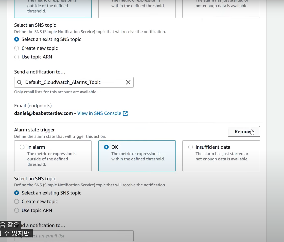 - SNS 지정 및 토픽 생성
