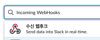 해당 웹 페이지의 검색창에 Incoming WebHooks를 검색합니다.
