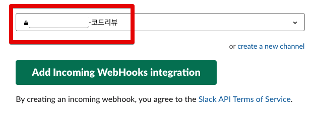 웹훅으로 알람을 받고 싶은 채널을 선택하신 뒤, Add Incoming WebHooks integration을 클릭합니다.