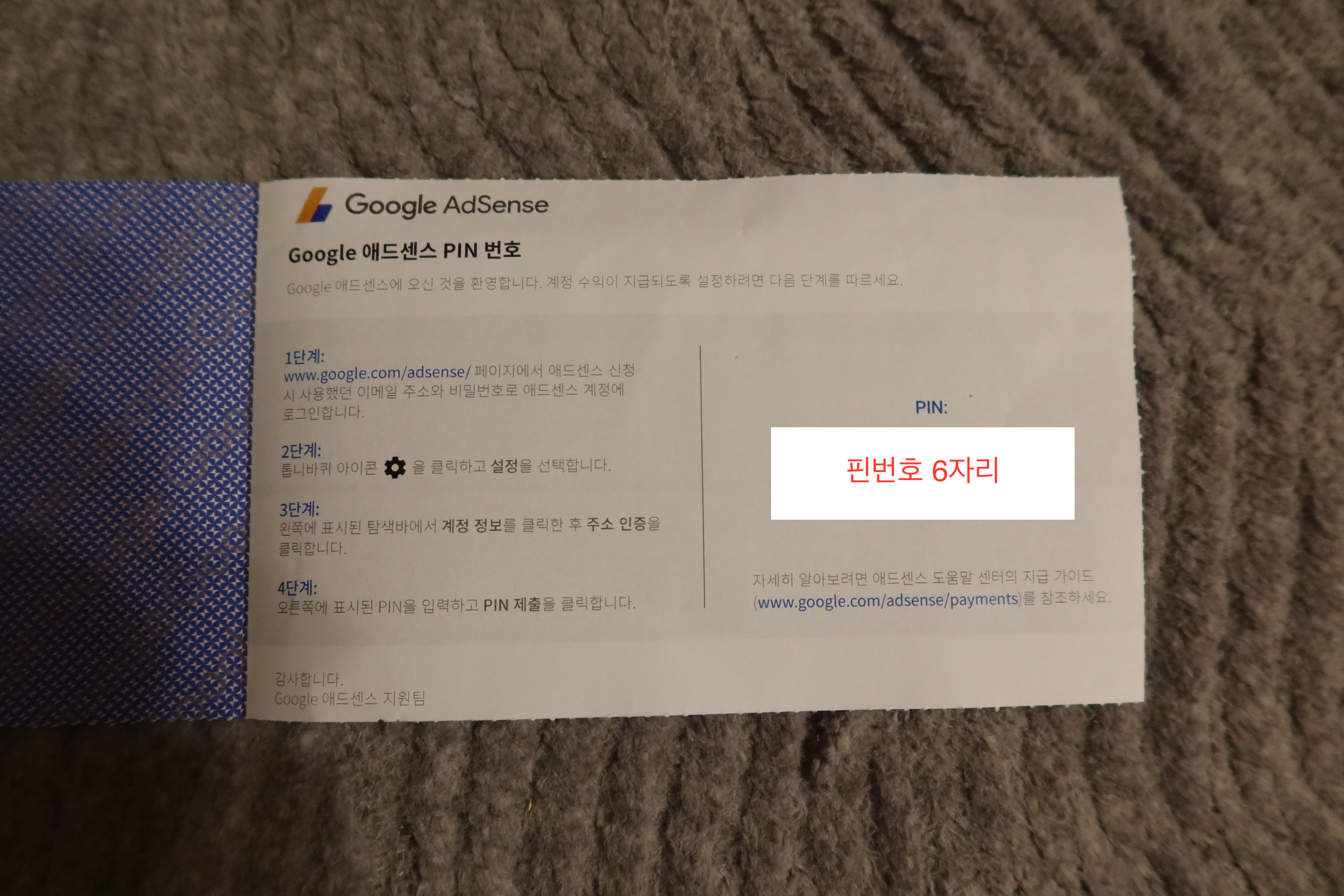 이게 바로 구글 애드센스 핀번호 우편 이군요!