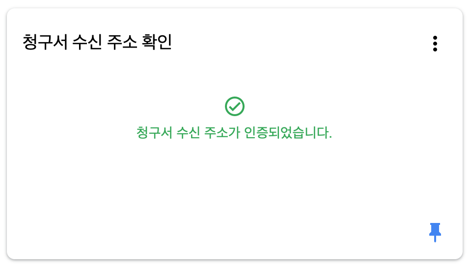 구글 애드센스 메인으로 갔더니, 이렇게 청구서 수신 주소가 확인/인증이 되었다는 메시지가 출력되어 있었습니다.