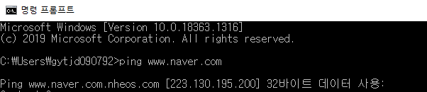 cmd -> ping  www.naver.com