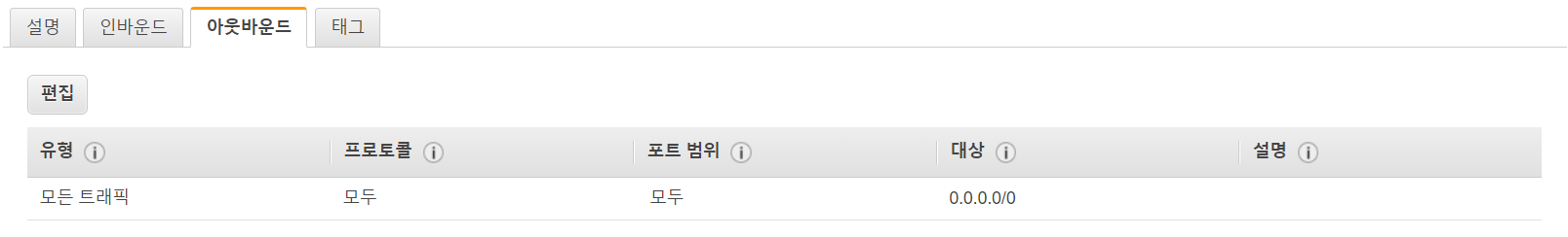3. 기본적으로 모든 Security Group의 아웃바운드 규칙은 모든 아웃바운드 트래픽 허용