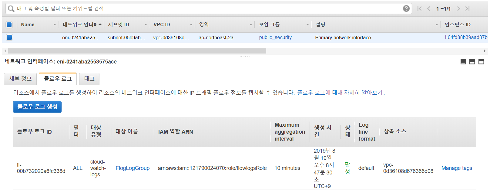 세 번째로 그림에는 나와있지 않지만 VPC Flow Logs입니다. VPC 내에 있는 Resource들은 Elastic Network Interface(ENI), 네트워크 인터페이스를 가지는데요. Network Interface에 VPC Flow Logs를 설정하면 Elastic Network Interface(ENI)를 지나다니는 IP 트래픽을 수집할 수 있습니다.
