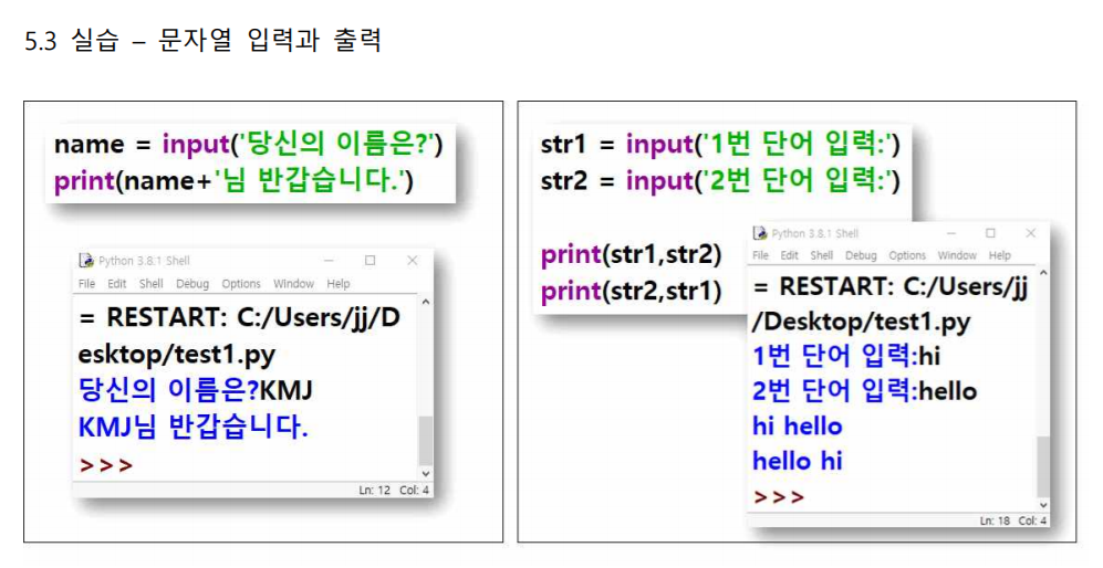 ex) int( ) float( ) 등 5.3 실습 – 문자열 입력과 출력