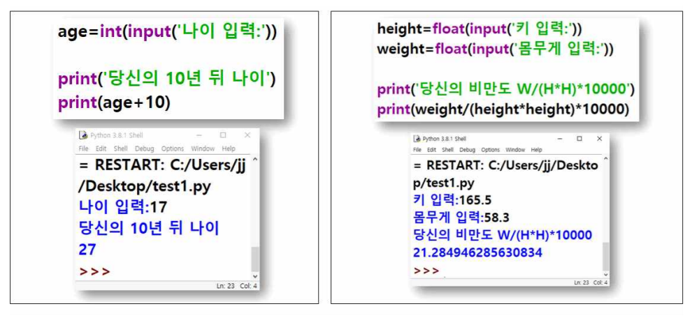 ⦁ 사용자가 숫자를 입력하더라도 문자열 형태로 입력 받습니다.