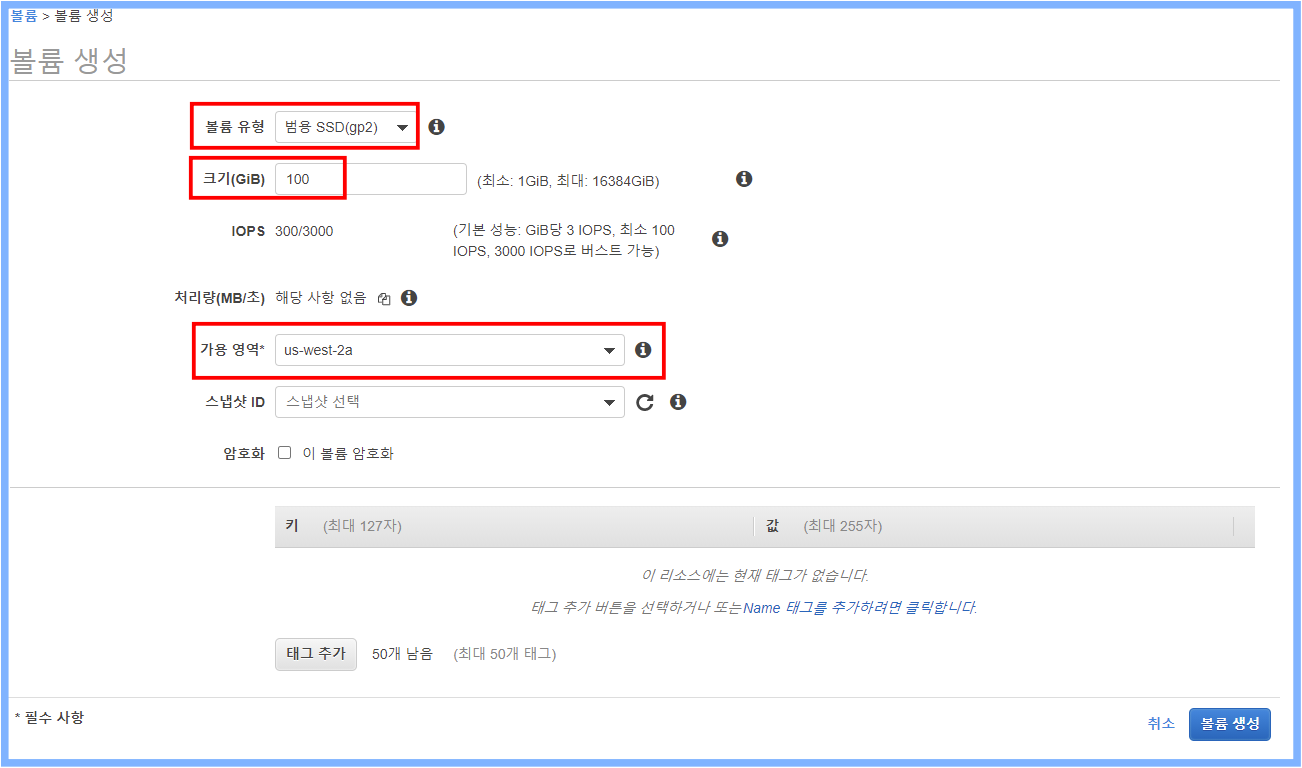 콘솔에서 EBS 볼륨 생성 후 EC2 인스터스에 연결