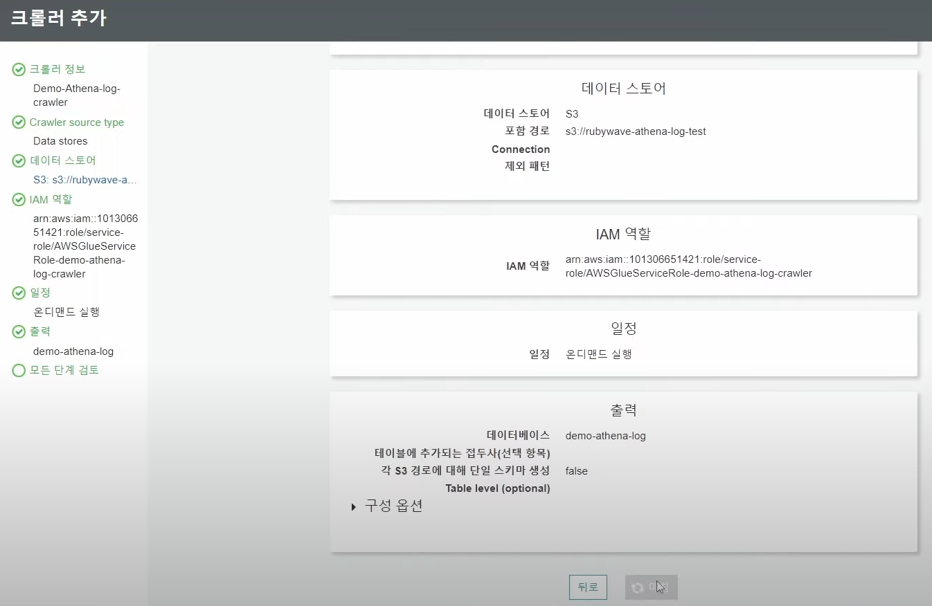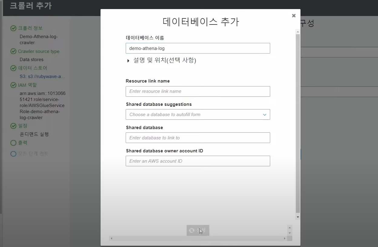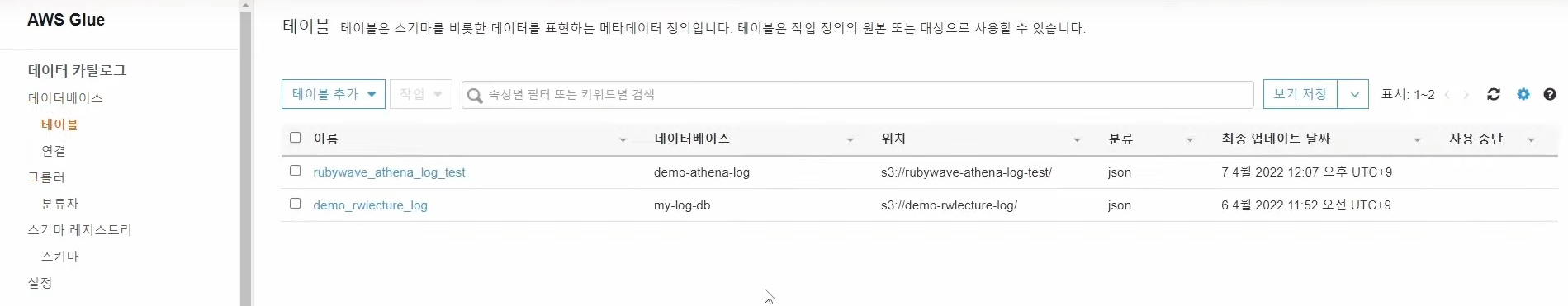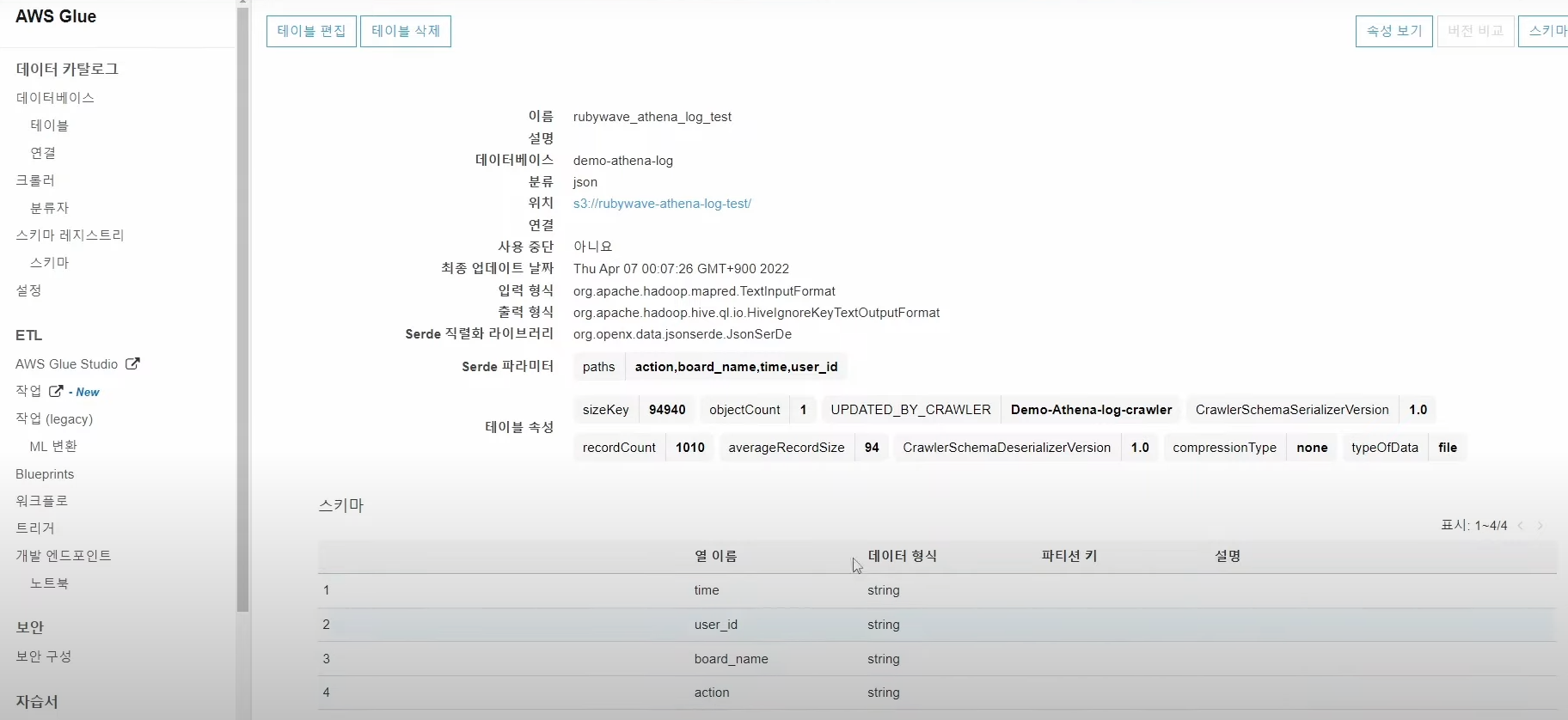 ## AWS Glue Crawler 를 사용해 S3버킷에 저장된 로그의 스키마 생성