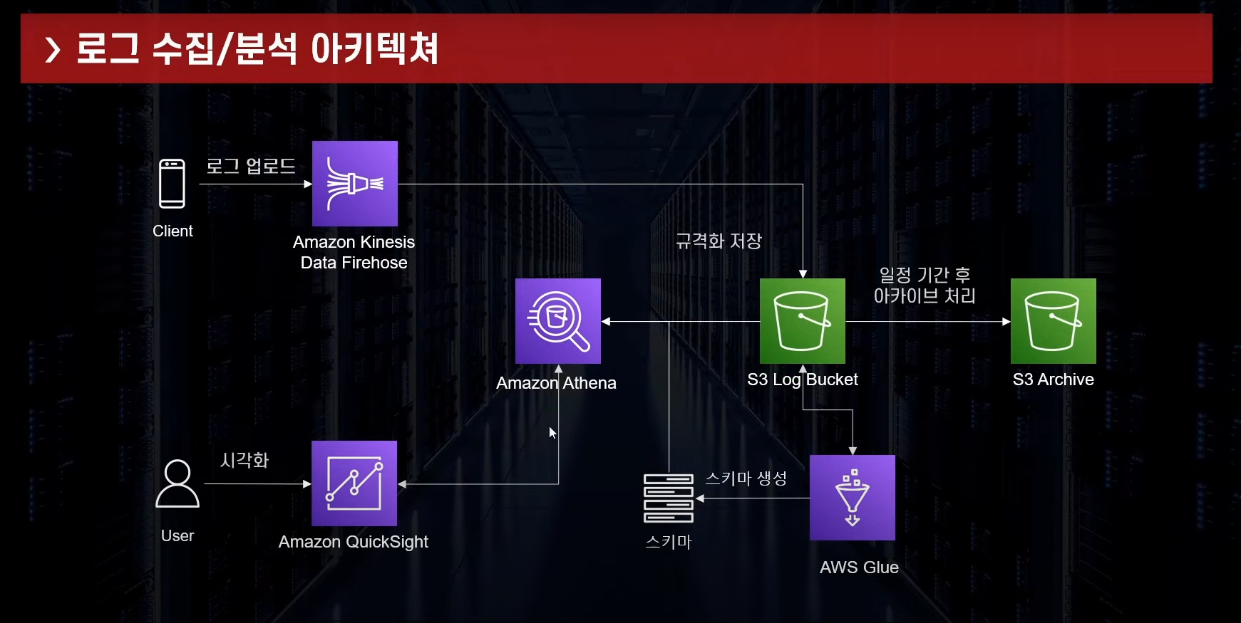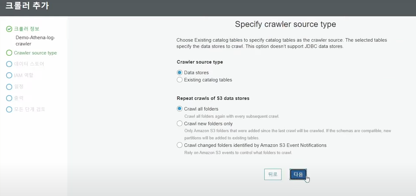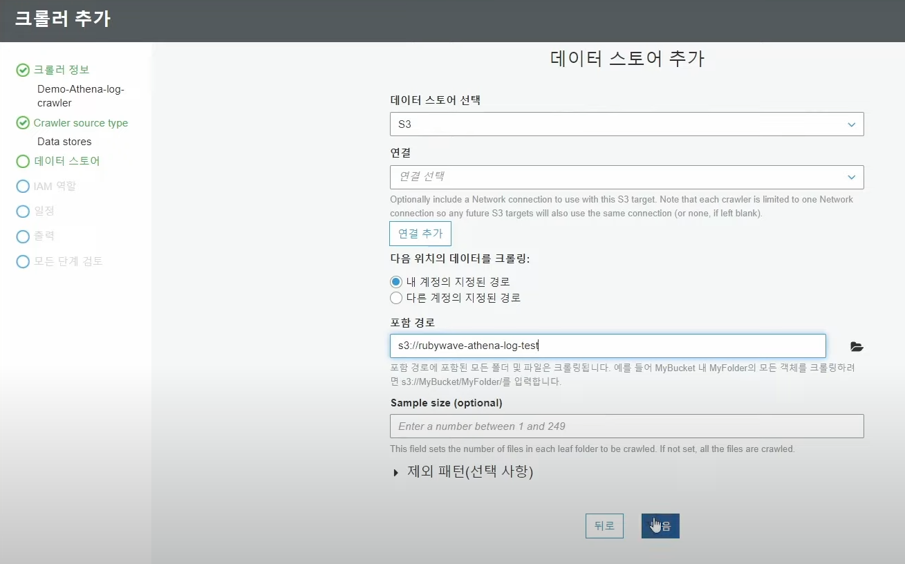 ## AWS Glue Crawler 를 사용해 S3버킷에 저장된 로그의 스키마 생성