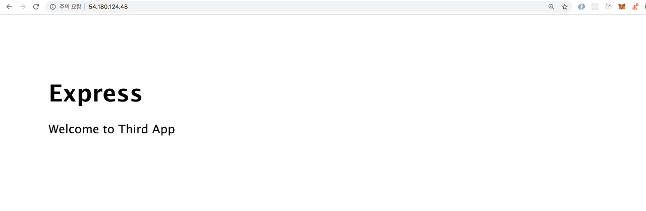 이 앱은 express generator 로 간단하게 만들어진 앱으로 아래 사진과 같이 단순히 First App, Second App, Third App 이라는 html 페이지를 보여줍니다.