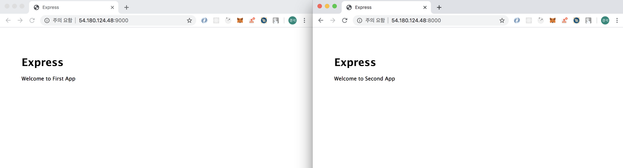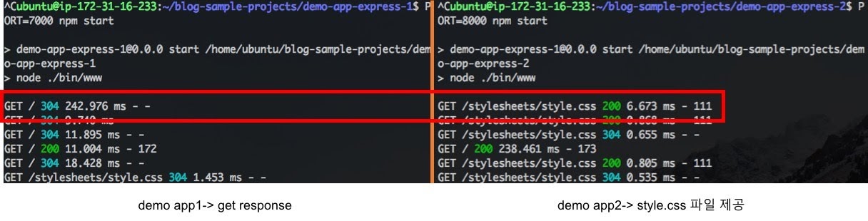 이번 포스팅은 __ubuntu 18.04__ 기반으로 진행할 예정이며 sample app 으로 express app 두개를 사용하도록 하겠습니다.