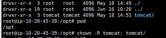 root@ip-10-20-45-39:/opt# chown -R tomcat: tomcat/