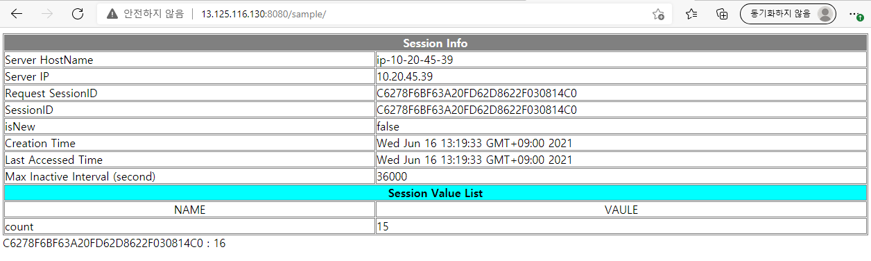 크롬 시크릿창에서 ELB경로/sample/tomcat_session_test.jsp 확인