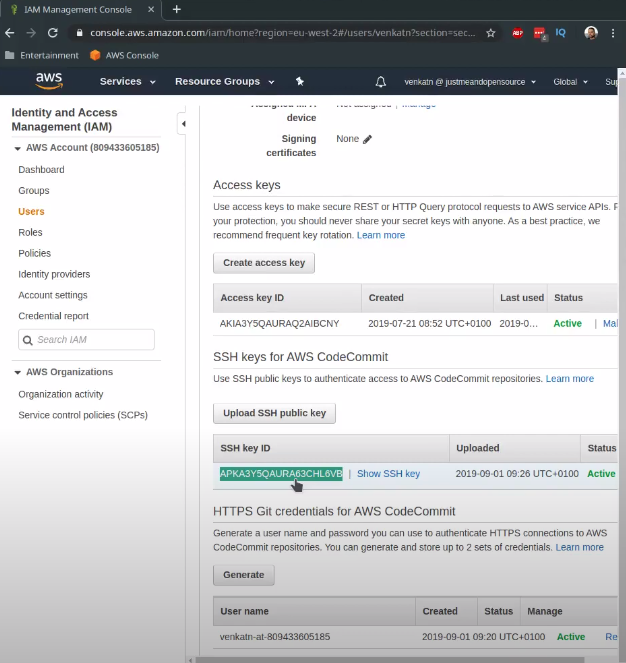 ## AWS CodeCommit에 대한 SSH 키 생성 방법