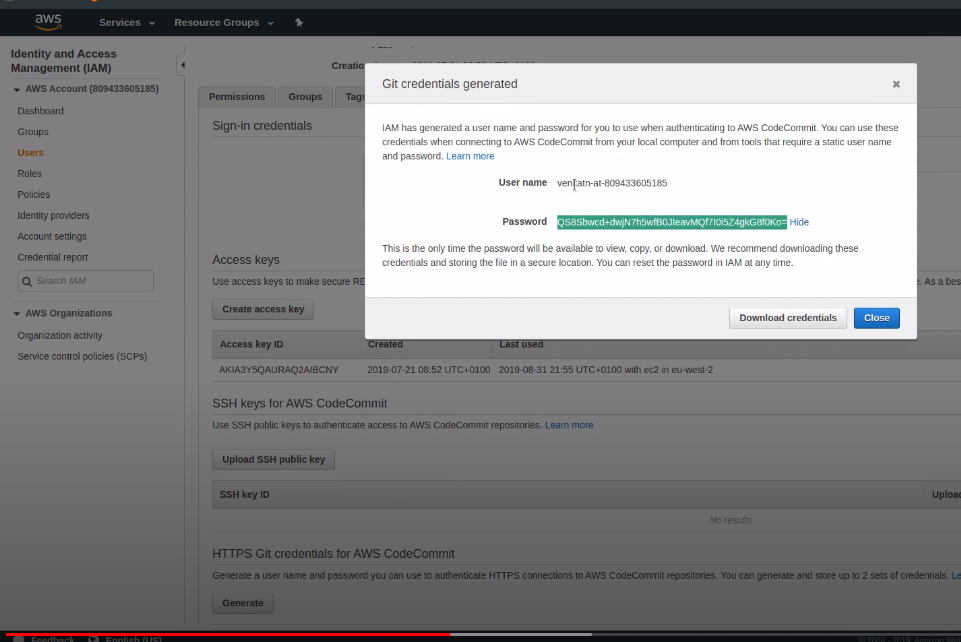 - HTTPS Git Credential for AWS CodeCommit 클릭