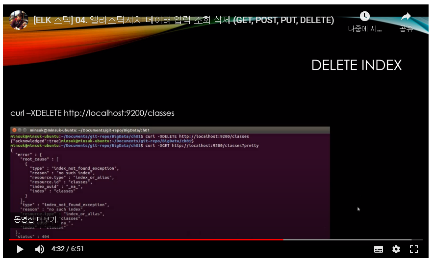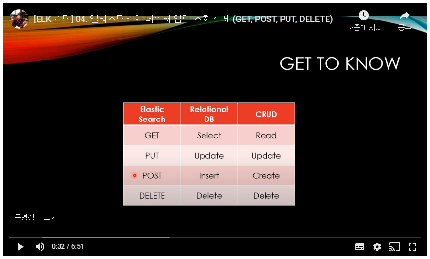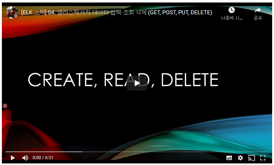 ## 2-2. 엘라스틱서치 데이터 입력 조회 삭제 (GET,POST,PUT,DELETE)